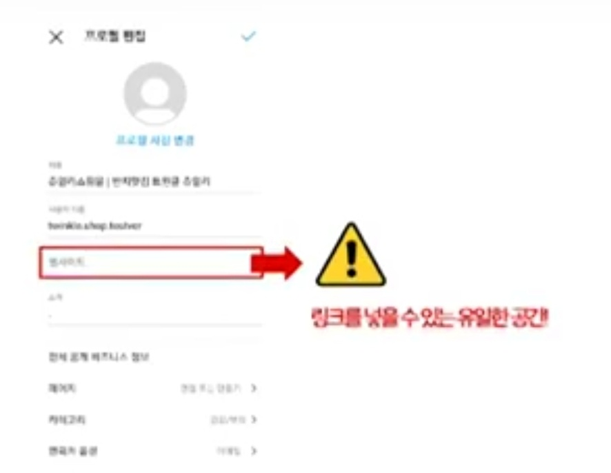 웹사이트 . 인스타그램은 링크를 넣을 수 있는 곳이 딱 한 곳이라고 합니다. 블로그에서는 링크를 하고 싶은 곳의 url을 적어두면 링크가 되지만 인스타그램에서는 url을 적어둔다고 해도 클릭하면 연결이 되지 않는다고 합니다. 오로지 프로필에서 웹사이트 영역에 링크를 클릭하게 되면 연결이 된다고 합니다. 만약 링크를 할 곳이 많은 업체는 링크를 모아주는 기능을 하는 사이트를 이용해서 주소를 넣으면 된다고 합니다.
