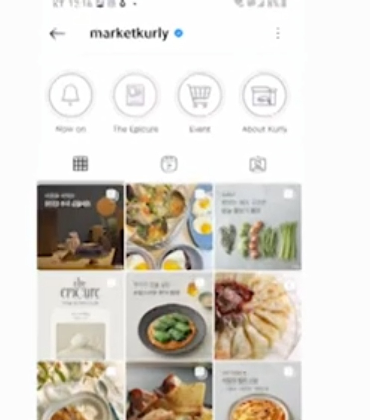 마켓컬리의 인스타그램을 살펴보니 이름에 로고를 사용했습니다. 마켓컬리는 고유명사로 사용하고 있기 때문에 다른 설명이 없어도 상관없기 때문에 이름에 로고를 사용한 것을 알 수 있다고 합니다. 하단에 제품서비스 카테고리가 적혀 있고 내일의 장보기로 브랜드가 이야기 하고 싶은 슬로건을 넣은 것을 볼 수 있다고 합니다. 프로필 영역에 #마켓컬리라고 해시태그를 한 것을 볼 수 있다고 합니다. @로 다른 계정을 태그한 것을 살펴볼 수 있다고 합니다. 다른 계정을 넣어 둔 이유는 마켓컬리를 들어온 팔로워 18만 명에게 다른 계정도 살펴보길 바라는 마음으로 소개를 하는 것이라고 합니다. 마켓컬리 장보러가기로 해서 url도 들어가 있다고 합니다. 아래 피드를 살펴보면 중간에 하이라이트가 있는데 컬리에서 이야기 하고 싶은 것을 하이라이트에서 보여주고 있다는 것을 살펴볼 수 있다고 합니다.